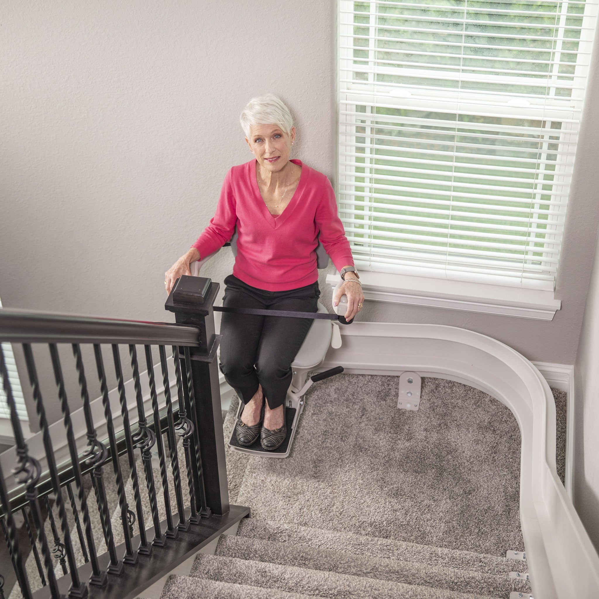 BrochureThe Elite Curved Stairlift is the same as the Elite straight but is applied to staircases that turn to 90 and 180 degrees and can be as long as are required to be. These are made to order so longer lead times should be expected.